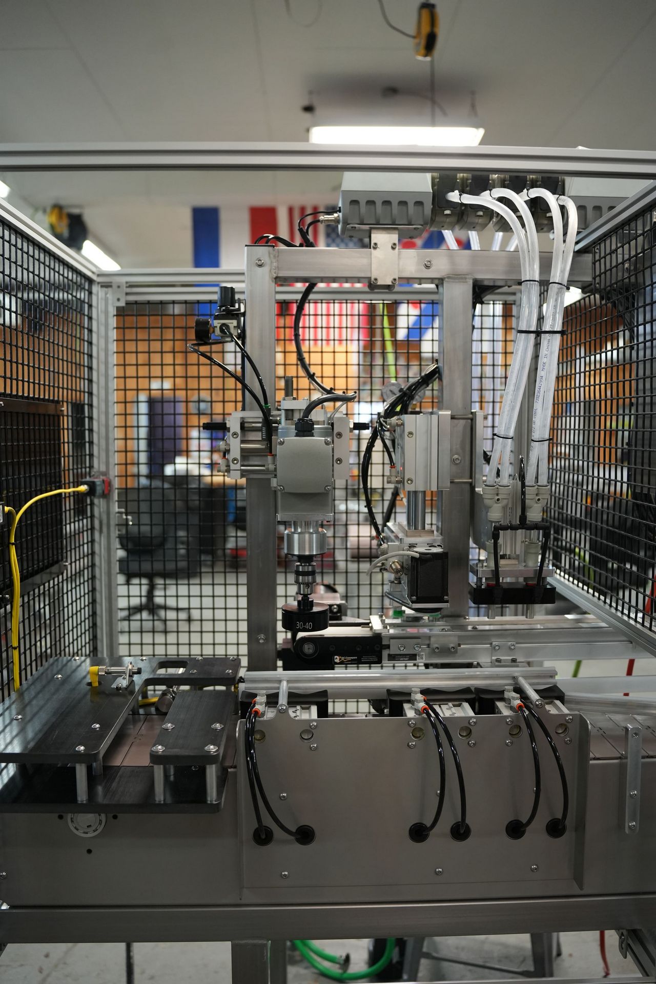 The automatic lid torquer is a clutch system that can be adjusted to meet your torque spec every time. If a fault occurs due to a lid manufacturing defect, the machine will display a warning.