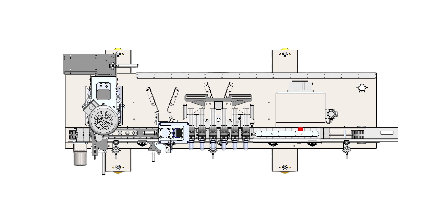 An inline rinse cleans the cans, while the air blower removes most water from the lids before they exit the machine.